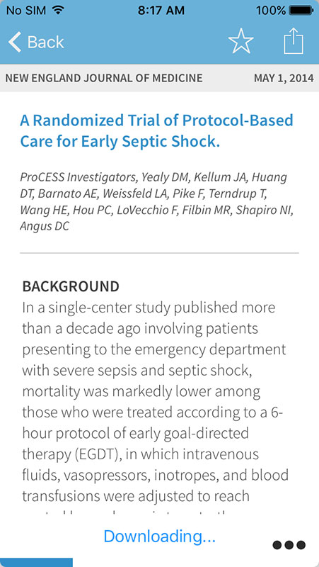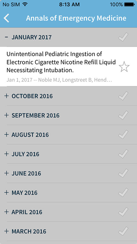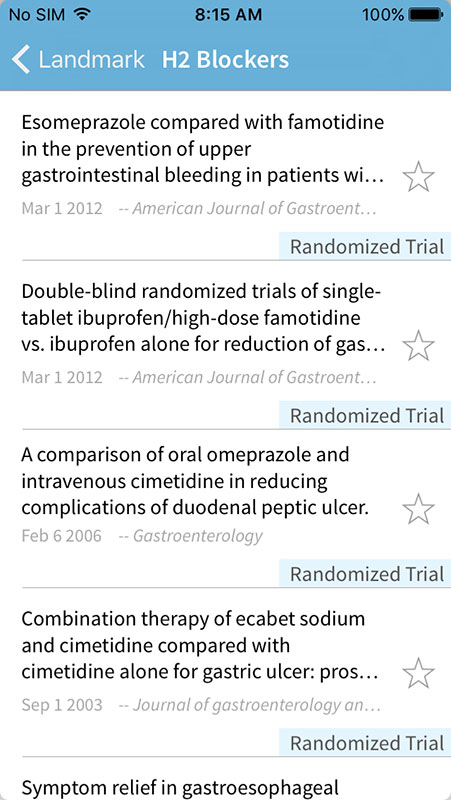 Docphin app also features Landmark Articles, grouped by specialty, topics of interest, or medications. Here you can access the articles from other journals as well (not just the selected ones). But the principle is the same, you'll be free to view abstracts or open access articles, but lot of these will also require institutional credentials in order to see the full text.