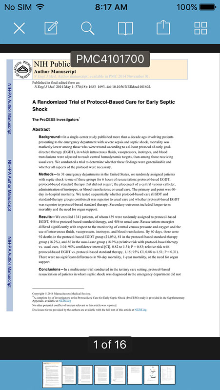 Tapping on View Article or View PDF would open the full article text. View Article shows the text from the Journal websites embedded in the app, so the view looks really well. On the other hand, View PDF shows PDF document, which is too small. You can, of course, use finger gestures to zoom in or out, or to navigate, but having smaller screen makes it cumbersome.