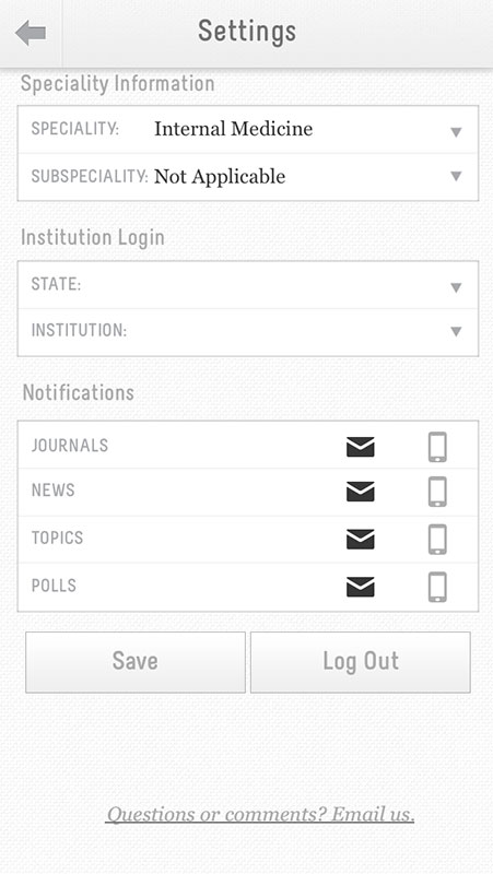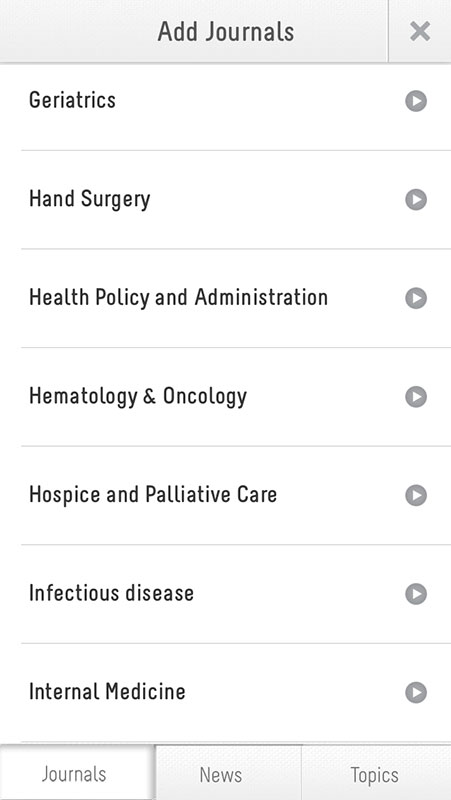 Once you download and start the app, it will require you to register an account by providing basic personal information, including your name, email, state, institution, as well as your specialty and subspecialty that would help the app create an initial journal collection tailored to your specialty and your interests.