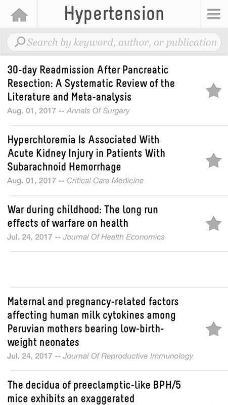 Similarly, you can add topics of your interest to the news feed by searching for particular keywords, such as "hypertension" or "cholecystostomy", and get the related news and articles in your news feed. I guess that "hypertension" keyword wasn't too specific because I got too broad results.