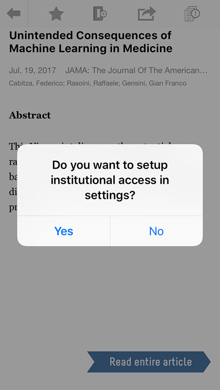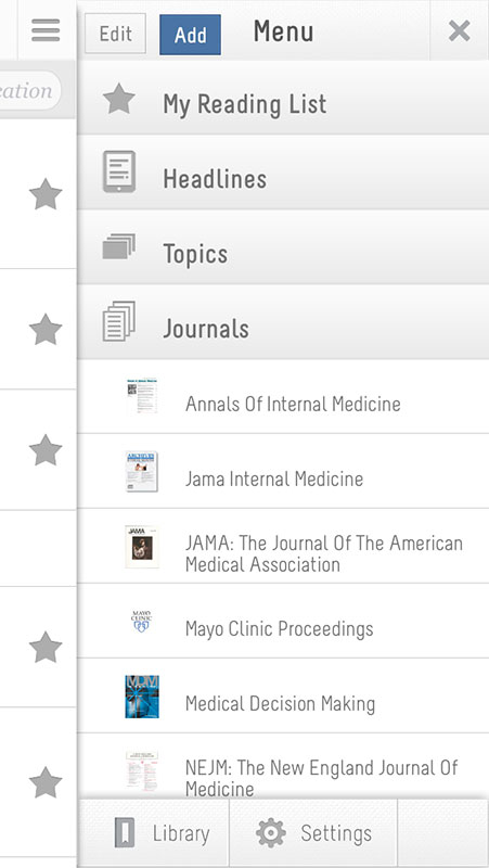There are also JAMA articles, including JAMA Internal Medicine, Annals of Internal Medicine, and more. While a lot of these topics, mostly those from NEJM, are free to access, some require institutional access and login details that can be added in settings.