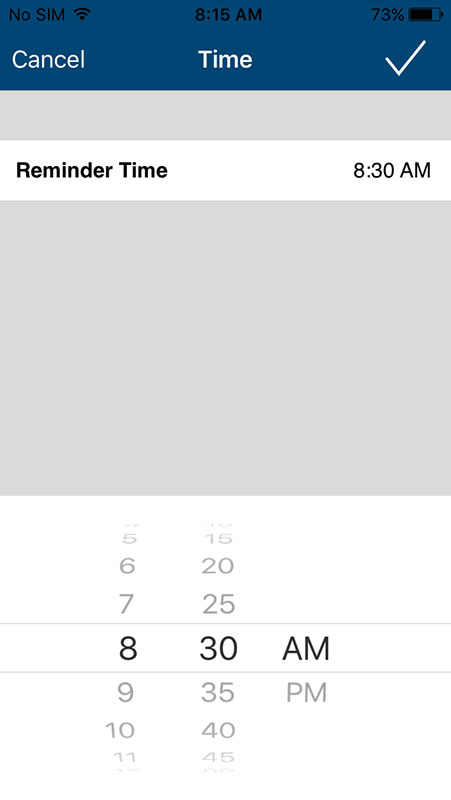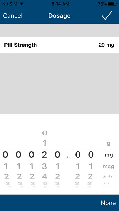 So I had to continue adding drug information manually, which is easy if you follow instructions from your prescriptions. Beside basic information, here you can set reminder times when the app will send you push notifications. You'd then have option to Take, Postpone or Skip your medication.