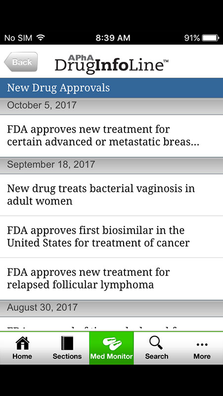 DrugInfoLine, a free app for iPhone, developed by American Pharmacists Association. It is a newsletter of interpreted drug and pharmacotherapeutic information designed to keep pharmacists up-to-date on the latest trends and news in pharmacy.Staying up-to-date in the pharmacy profession means staying relevant in patient care. For many pharmacists, unfortunately, education ends when they leave the school.