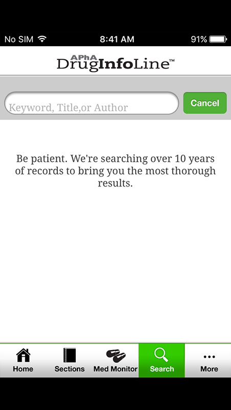 DrugInfoLine app also has a search feature that can be used for finding the particular topics or articles. However, it requires patience because it searches over 10 years of records. I tried this feature by typing in 'diabetes' and the app froze again. No loading icon, not 'Please wait' message, nothing. Just freeze, that forced me to shut down the app after a 10-minute wait, deleted it and install it again.