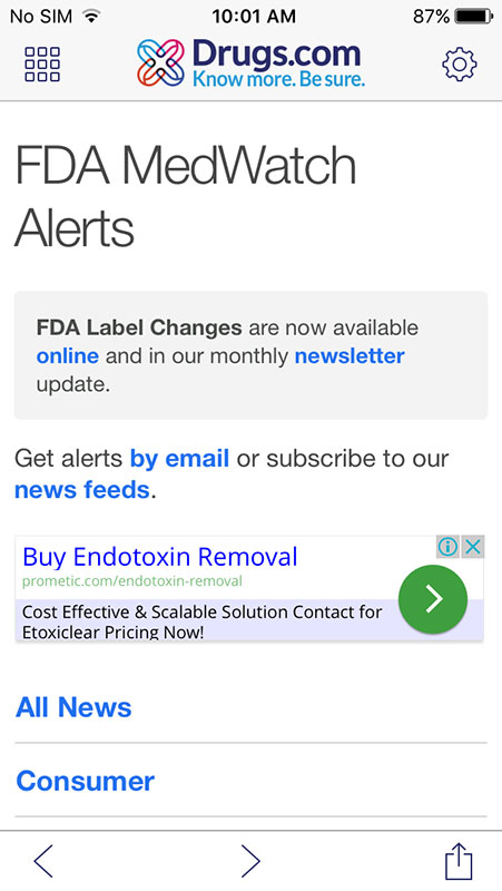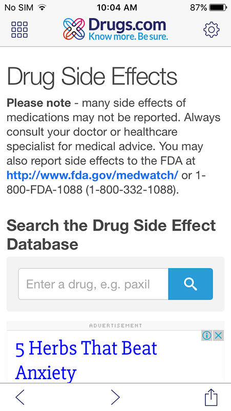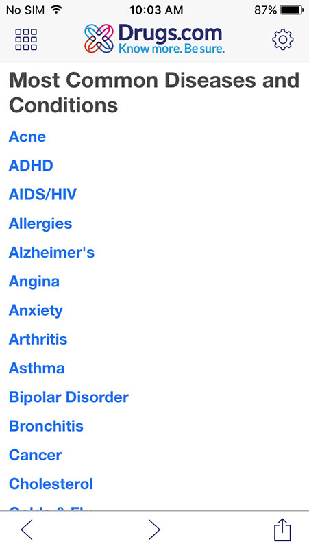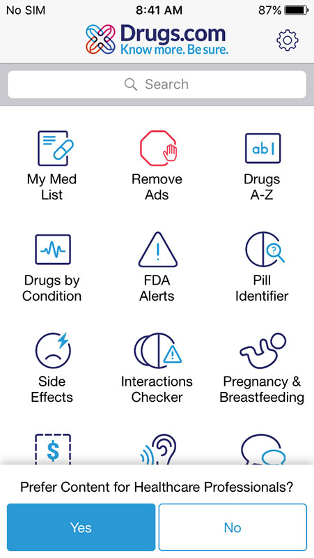 While Drugs.com Medication Guide app continues the tradition of its parent website as the most popular, comprehensive and up-to-date source of drug information, with huge and robust database, it should be noted that it only includes package insert info, which may not always be consistent with current guidelines or manufacturing information. Also, the side effect checker lacks the ability to rank information provided on relevance.