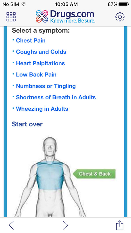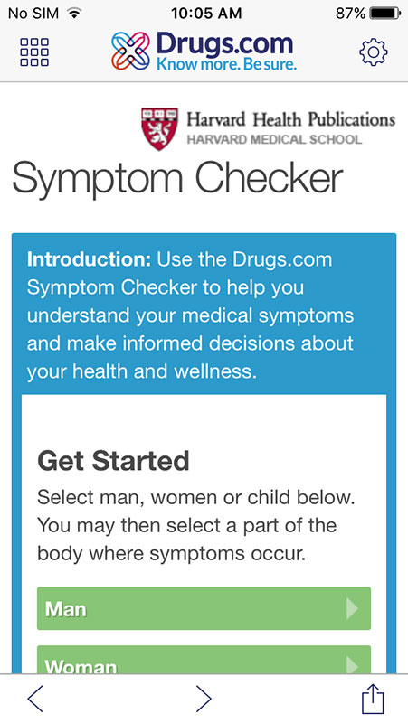 Another useful feature is Symptom Checker supported by Harvard Medical School , which broadens the scope of this app from being a simple drug encyclopedia to full scope medical app. Symptom Checker helps users understand their medical symptoms and make responsible decisions regarding their health and wellness. It's made in intuitive way, offering users an option to choose symptoms for Man, Women or Child, as well as the parts of the body where symptoms occur. Answers that could indicate an emergency offer a recommendation to see a provider immediately, while common conditions may suggest using typical remedies before seeing a provider if there's no relief.