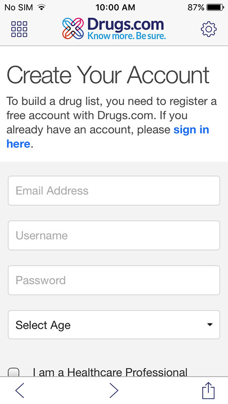 First feature listed on the home screen is My Med List, which requires free registration through the app. Creating a free account allows you to save your personal drug list, and have all relevant medical information assembled in a simple, easy-to-read personalized format, which includes in-depth consumer information, FDA alerts, drug interactions, as well as interactions with food, allergy and medical conditions. It's important to note that the app doesn't require an account for general use. Besides the ability to create your own personal list of medications, account information is used to provide targeted ads in the app (you can opt-out from at any time).