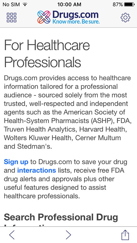 Several years ago, Drugs.com developed and released the app as a very useful medication reference, which brings website's features to mobile devices. The goal of the app was the same, i.e. providing comprehensive and up-to-date information about medications, which was adapted for both consumers and healthcare providers. An impressive list of resources, including Micromedex, the American Society for Health-System Pharmacists, and Mayo Clinic, is used to meet this goal.