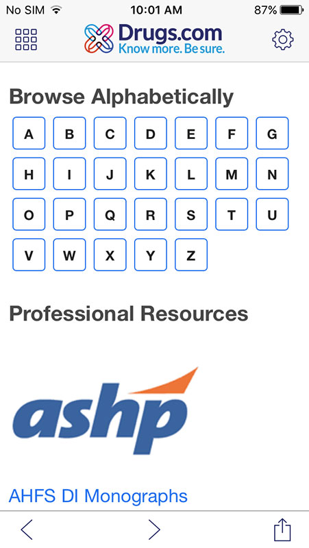 Probably, one of the most important and most impressive features for healthcare professionals is Resource List, which provides access to healthcare information from the most trusted and respected sources, such as FDA, American Society of Health-System Pharmacists, Harvard Health, Truven Health Analytics, etc.