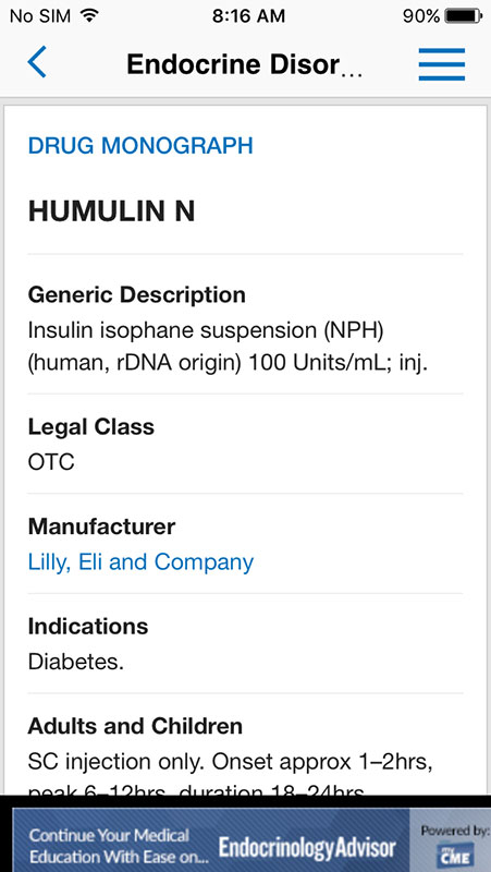 Today, we review Endocrinology Advisor, a free app that – according to its developers – provides endocrinologists, diabetes educators and other healthcare professionals with the latest news and emerging trends in endocrinology, including medical slideshows, expert articles, case studies, concise drug monographs, and continuing medical education (CME) activities.