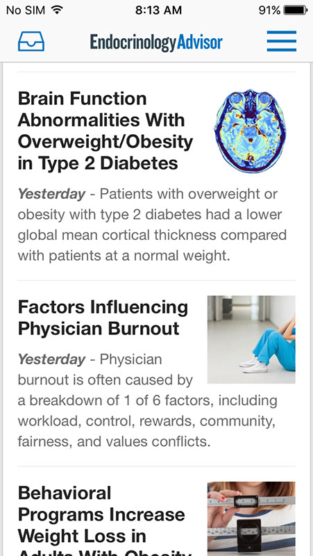 It opens to the home screen that features the most recent news and articles focusing on various endocrinology topics. The news opens within the app, which is a good thing, knowing that many apps that aggregate news in a similar fashion only links to their parent websites.