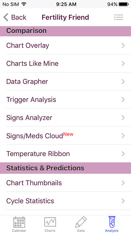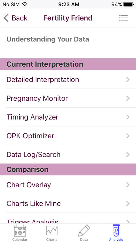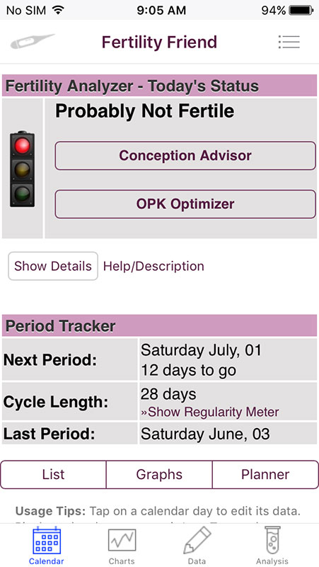 One of the most useful features in Fertility Friend app is Fertility Analyzer, which would tell you if you're fertile or not on a particular day, providing more detailed information via Conception Advisor. Just like in other similar apps, the more information you add, you allow the app to learn more about you, hence you'd get more accurate results and predictions.