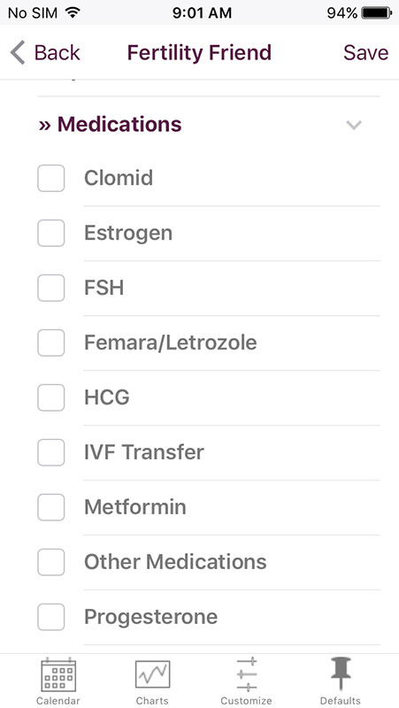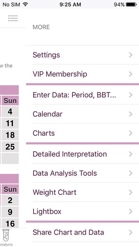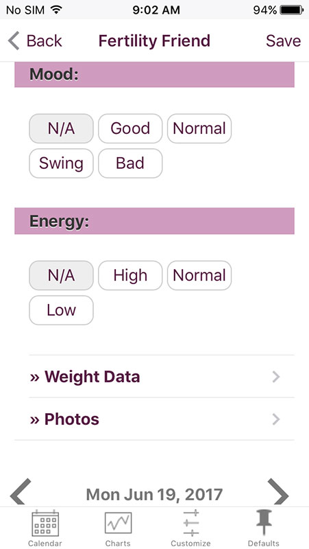 You can also add daily notes, as well as other information, such as secondary signs, tests performed and devices used, specifics (which are basically symptoms), medications (if you use any), which are related to fertility/pregnancy, except for metformin. There, you can also track your moods, energy levels, weight, or you can add photos via Lightbox which requires VIP upgrade.