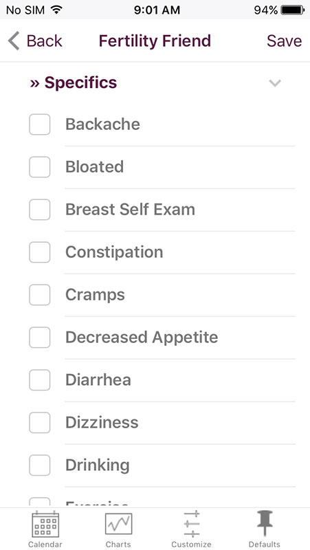 For- Ability to record and track more than just a period and ovulation cycle