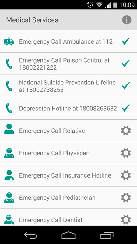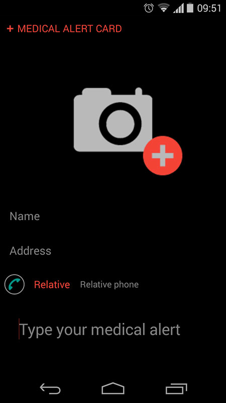 Beside first aid instructions, here you can also add medical alert card, with your name, address, phone of the relative that should be contacted in case of emergency, and the type of your medical alert.