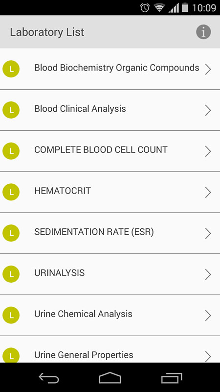 Here you'll also find the list of lab values, from complete blood biochemistry to urine sediment, which is useful if you use the app as a healthcare professional.
