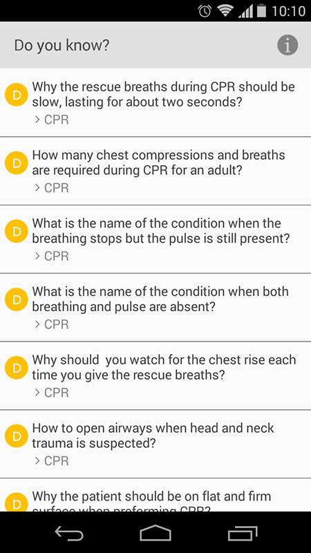 Many people who found themselves in an emergency situation would either panic or stand aside not being sure about what to do and how to help. Some of them may have had first-aid training, but emergencies don't happen every day, so recollecting memories on how to respond in such situations could be hard with some sort of guide, even for those who have advanced knowledge.