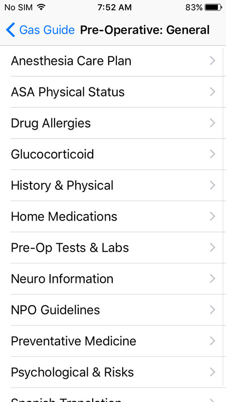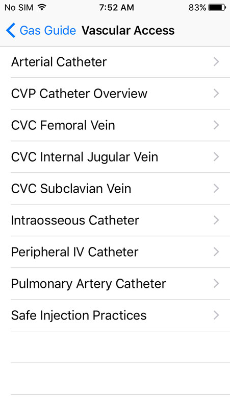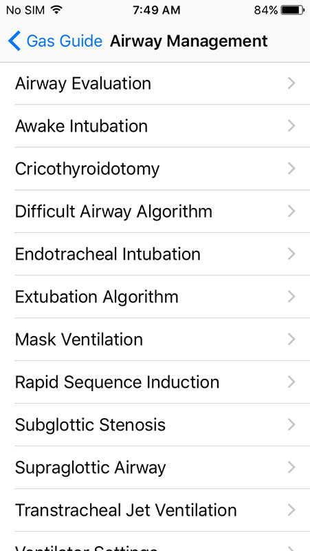 Also, the Gas Guide app is heavy on text, while it can actually add some multimedia to enrich the content, such as images or illustrations of certain procedures, i.e. airway management, vascular access, positioning of the patient, etc.