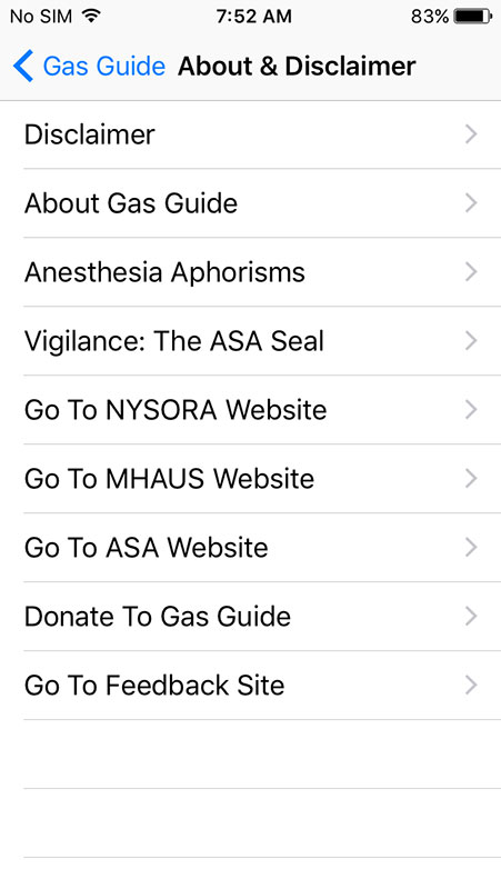 The app, tho, links to The New York School of Regional Anesthesia, Malignant Hyperthermia Association of the United States, and American Society of Anesthesiologists websites in the About section.