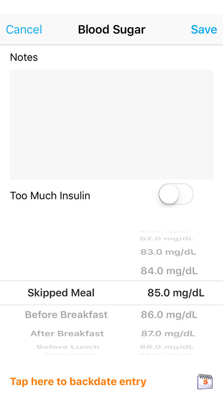 The app can be also used as a fitness tracker, allowing you to record and track your activity, with type, time and calories burned.