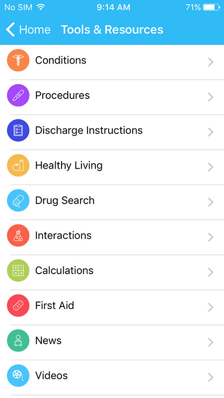 Tools & Resources section is aimed more at healthcare providers, but patients can use it as well to learn more about health conditions, procedures, discharge instructions and topics about healthy living.