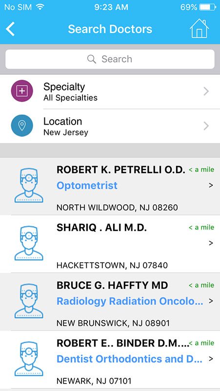 Another useful feature in GenieMD app is providers & facilities finder that allows users to look up physicians, pharmacies, and hospitals in their local area.