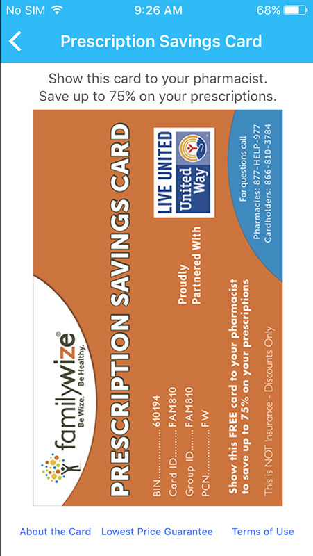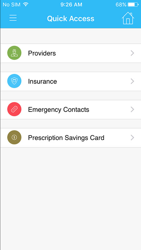 The app also allows patients to add their insurance information, emergency contacts, and to use prescription savings card at their local pharmacies.
