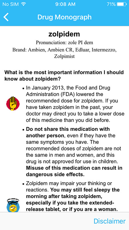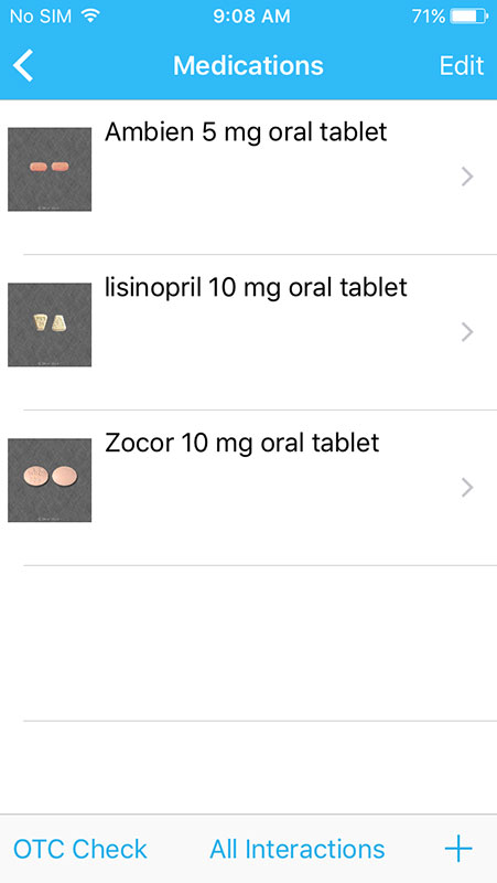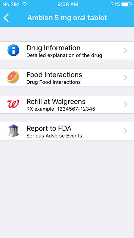 Medications is basically a medication tracker that allows you to add prescriptions and OTC you use on a regular basis. A nicely designed interface allows you to add drugs, view information about each, check interactions with other medications, food or conditions, refill at Walgreens, and even report serious adverse reactions to FDA.