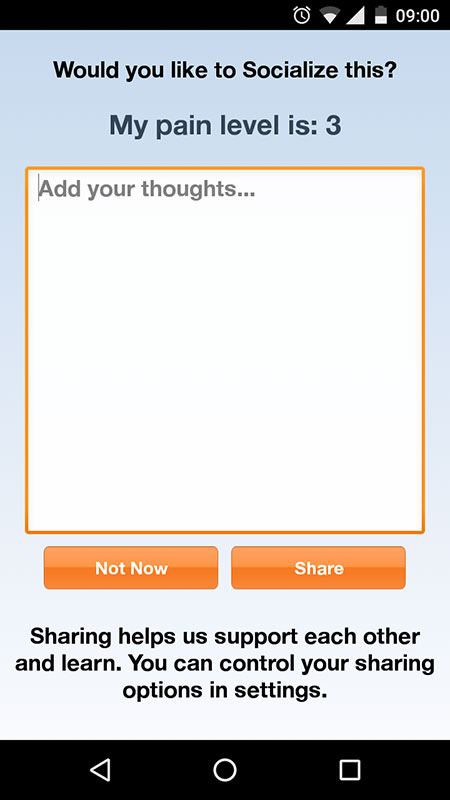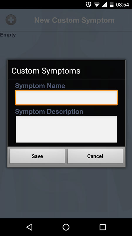 After completing all required information, patients can start tracking their symptoms. The app is easy to use thanks to its colorful yet outdated interface.
