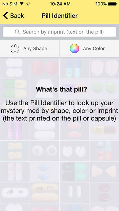 GoodRx app also includes Pill Identifier feature that enables users to search for medication by their color and shape. The app provides medication images with brief information about each.