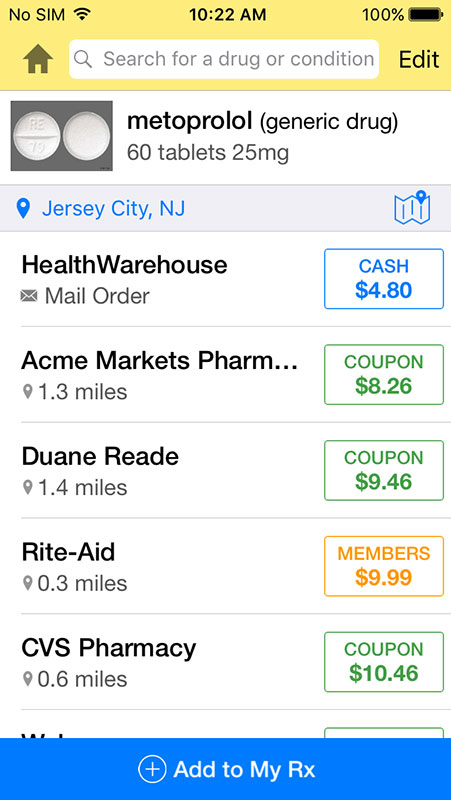 For this review, I've chosen Zantac and Lopressor and the app suggested that I should get them at Target (CVS) at the price of $579.85 for both. The price in other pharmacies was greater, varying from $7 to $22, which may look that you didn't save much. But, keep in mind that some drugs can vary widely, some even for more than $100, such as Lanoxin.