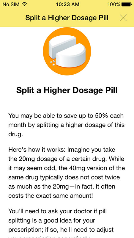 While the app provides saving tips, it won't suggest you cheaper drug alternatives. On the other hand, it can't do that, because it's not a replacement for your doctor or pharmacist's opinion. So, the best practice would be using this app only with recommendations from your medical provider. They could install GoodRx for Doctors app on their phone so they could text or email you with the information about the particular drug and its price at local pharmacies.