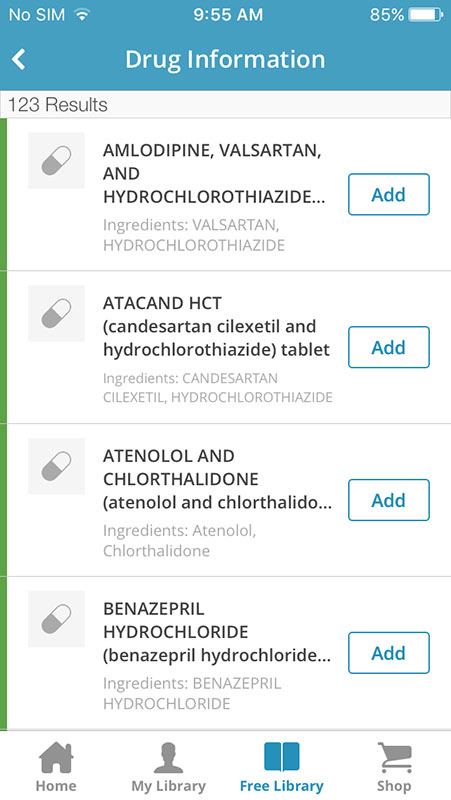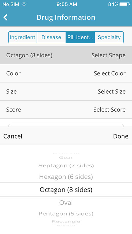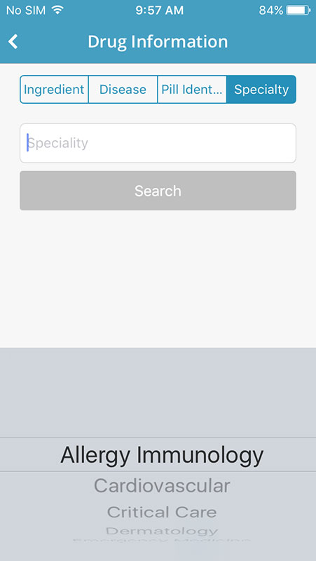 Medical providers can also check drug information by ingredient, disease and specialty. This section also includes pill identifier that helps providers identify medication by shape, color, size or score. The results include images of medications which help even more with visual identification.