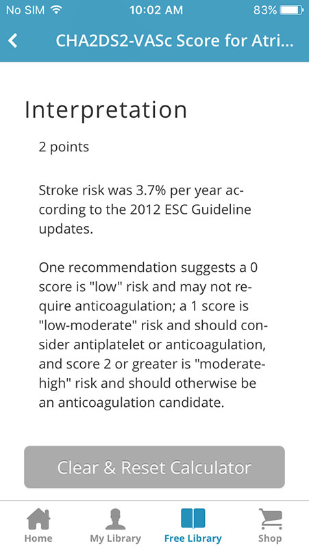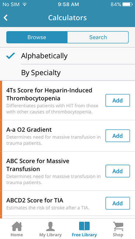 Many medical providers are looking for the apps that would help them in decision-making process. This is the reason why many would appreciate Calculators section that features various medical calculators listed alphabetically or by specialty. Providers can also use search, however, I had trouble finding some calculators (particularly CHA2DS2 risk score), although I typed the exact name and I double-checked to see if they're in the list.