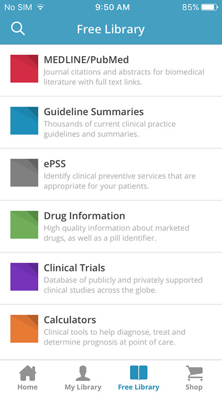 There is also Free Library category that includes free resources, and these are not just journal guidelines, but also include drug information and calculators.