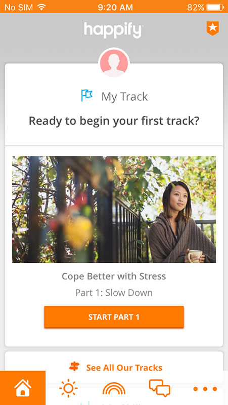Happify app is designed to improve mental health by acting as a guided journal to help users uplift themselves from anxiety, depression, negative thoughts, and the struggles of daily life.