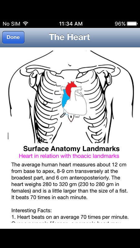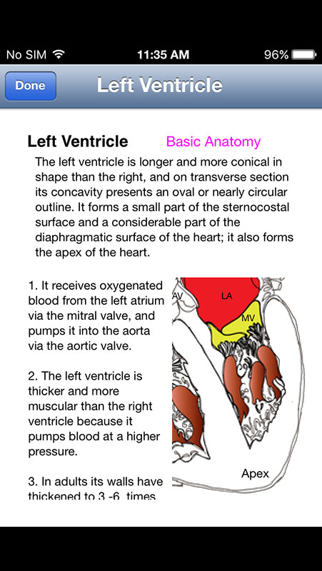 Heart Illustrated is one of those apps. It is a quick reference to a basic heart anatomy provided in an easy-to-use format, with helpful hand-drawn illustrations.