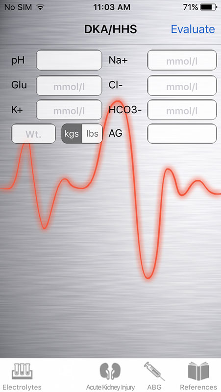 DKA/HSS is a simple calculator for two most common complications of diabetes, offering evaluation of values entered and suggestions for the treatment.