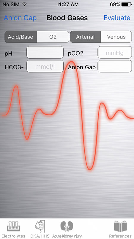 Blood Gases tab also offers a calculator which is simple and useful tool for evaluating blood gases. There's nothing special about it, but it gets the job done.