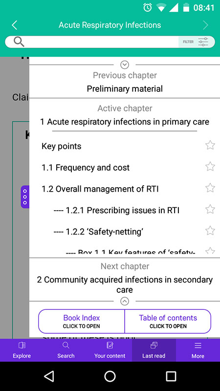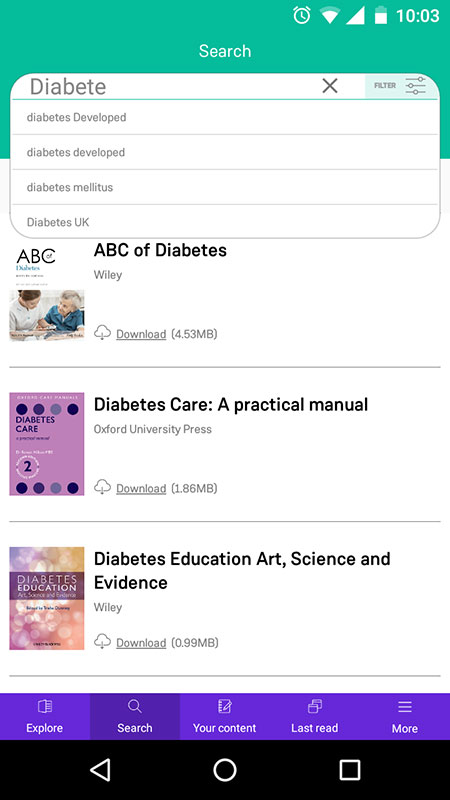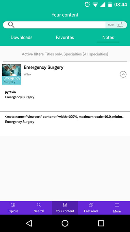Once downloaded, the book/guide would be available in 'Your content' section. Here, users can use the filter to sort out content by specialty.