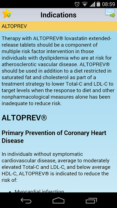 Each drug contains exhaustive information on indications & usage, dosage, drug interactions, potential adverse reactions and contraindications, suggestions for treatment in case of overdose, etc.