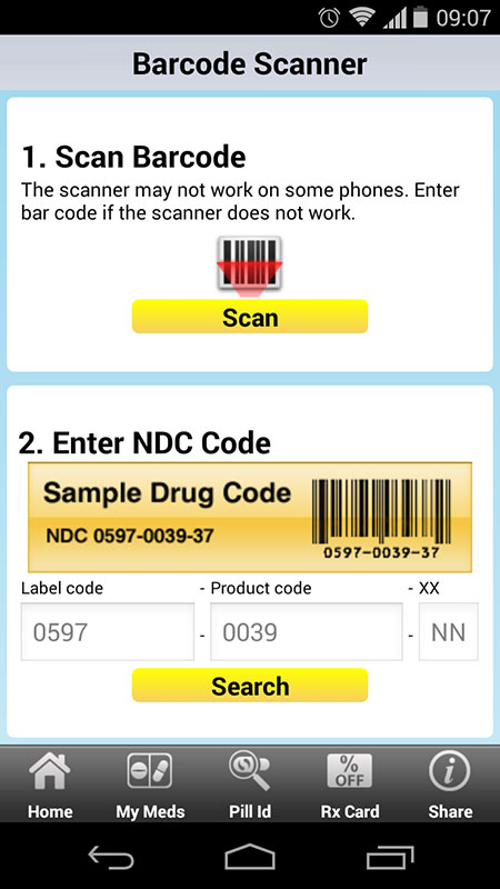 The app also features Barcode Scanner that allows adding medications in easy and convenient way. It uses your phone camera to scan the barcode from the medication package, automatically adding the drug into the list. If this doesn't work, you can add NDC code manually.