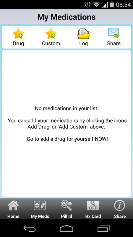 Users can open any of the options on the home screen to see the app in work. For example, if you tap on My Meds Reminder, it would open to a blank screen waiting to be populated by adding drugs you (or your loved ones/patients) use.