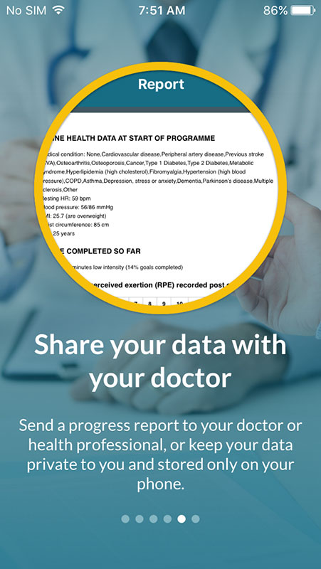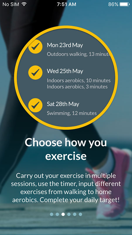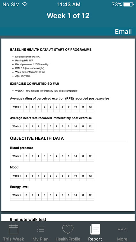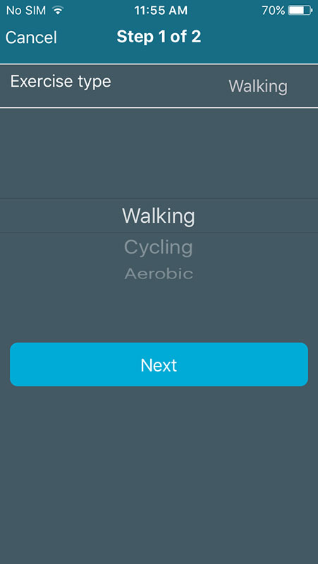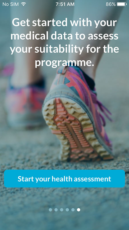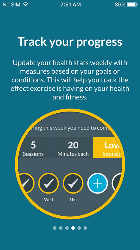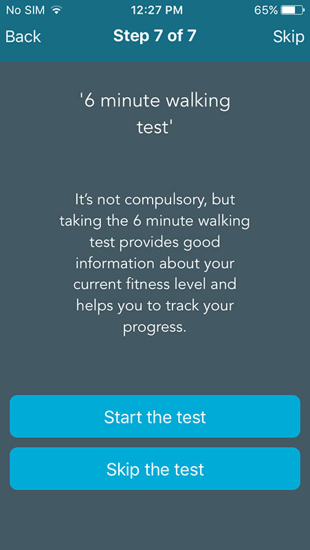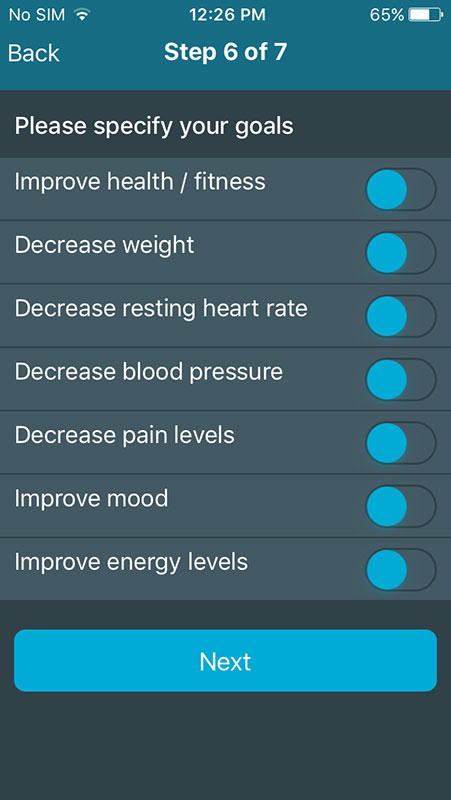 Next step will ask you to specify your goals, i.e. if you want to improve health/fitness, to decrease weight, resting heart rate, pain levels or blood pressure, or to simply improve your mood and energy levels. Final step is non-compulsory '6 minute walking test' that should provide good information about your current fitness level and help tracking your progress.