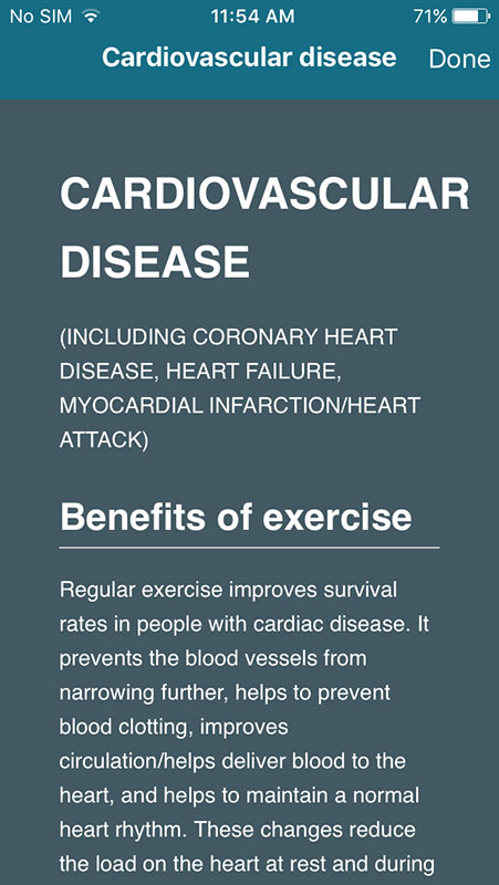 iPrescribe Exercise app also provides a lot of useful information regarding various medical conditions, i.e. how the exercise can improve your condition, with a general advice, as well as precautions and contraindications. No wonder since the app is created by physiotherapists with a huge experience in the NHS, private practice and elite sport, who are also experts in exercise prescription.