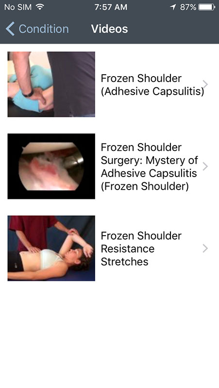 Conditions pages also contain images related to the condition, but lot of these are stock photos or too general, which depends on the condition. For example, abdominal trauma features images of abdominal surgery, an X-Ray of abdomen, and a female patient waiting for a MRI scan. There are also videos for each condition that link to YouTube and that are more relevant to the content.