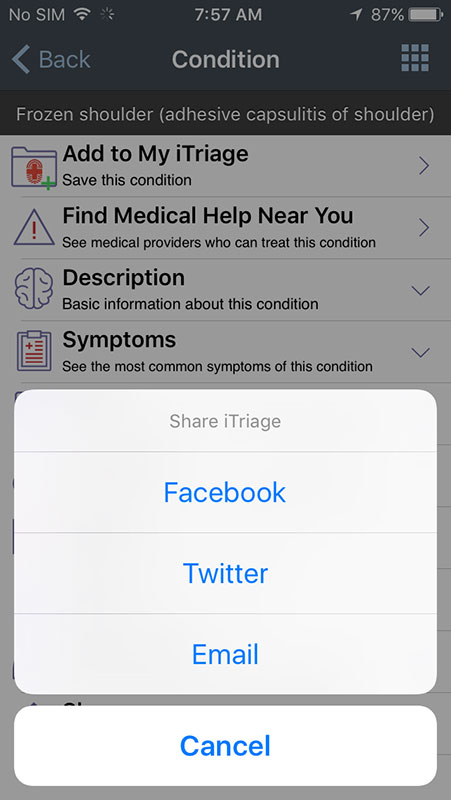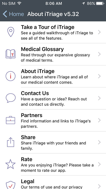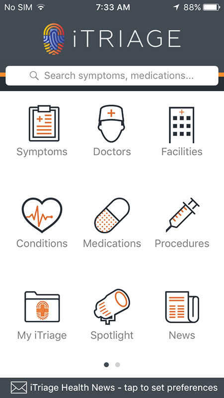 iTriage app is very useful tool that allows patients to access a number of healthcare resources, from symptom checker, physician or facility finder, to emergency and advice lines. While it's designed primarily to promote patient-centered healthcare, it can't ignore the advice of healthcare professionals, and that's the only way it should be used.