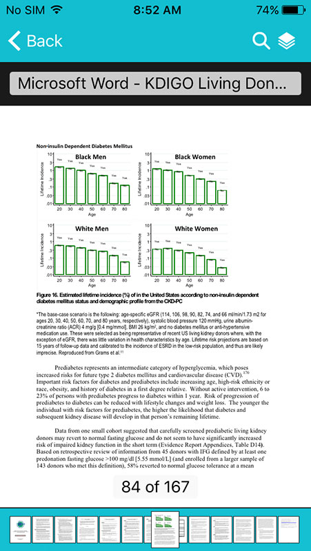 I'm not exactly sure why KDIGO decided to exclude this very useful option from the new 'improved' version of the app. Instead of taping on the document and inputting the number of the page, users have to swipe until they reach the desired page.