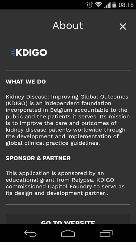 This year, with the help of NYC-based Capitol Foundry, KDIGO released the redesigned and improved KDIGO Mobile app, with a modern user interface and intuitive user experience, to once more bring evidence-based nephrology guidelines and recommendations to healthcare providers worldwide.