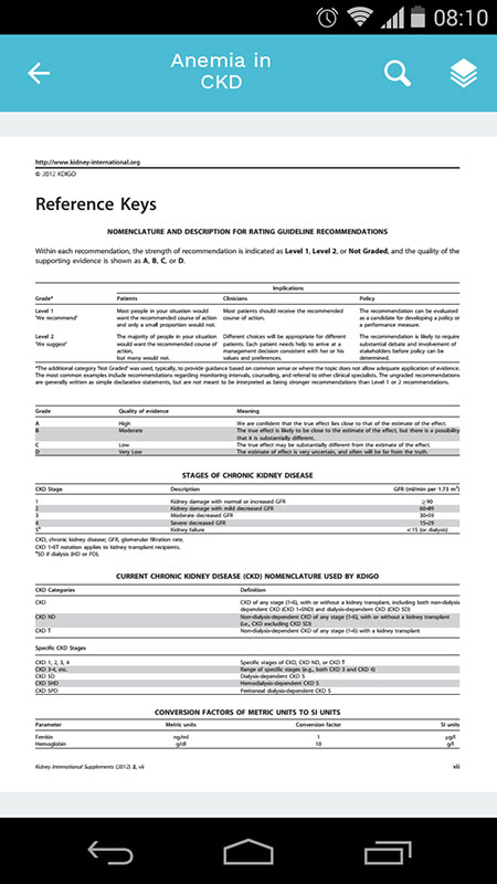 However, based on this review, we can't actually agree that KDIGO Mobile app is improved over the previous version. I used both iPhone and Android phone for the test, because there are differences in content and functionality.